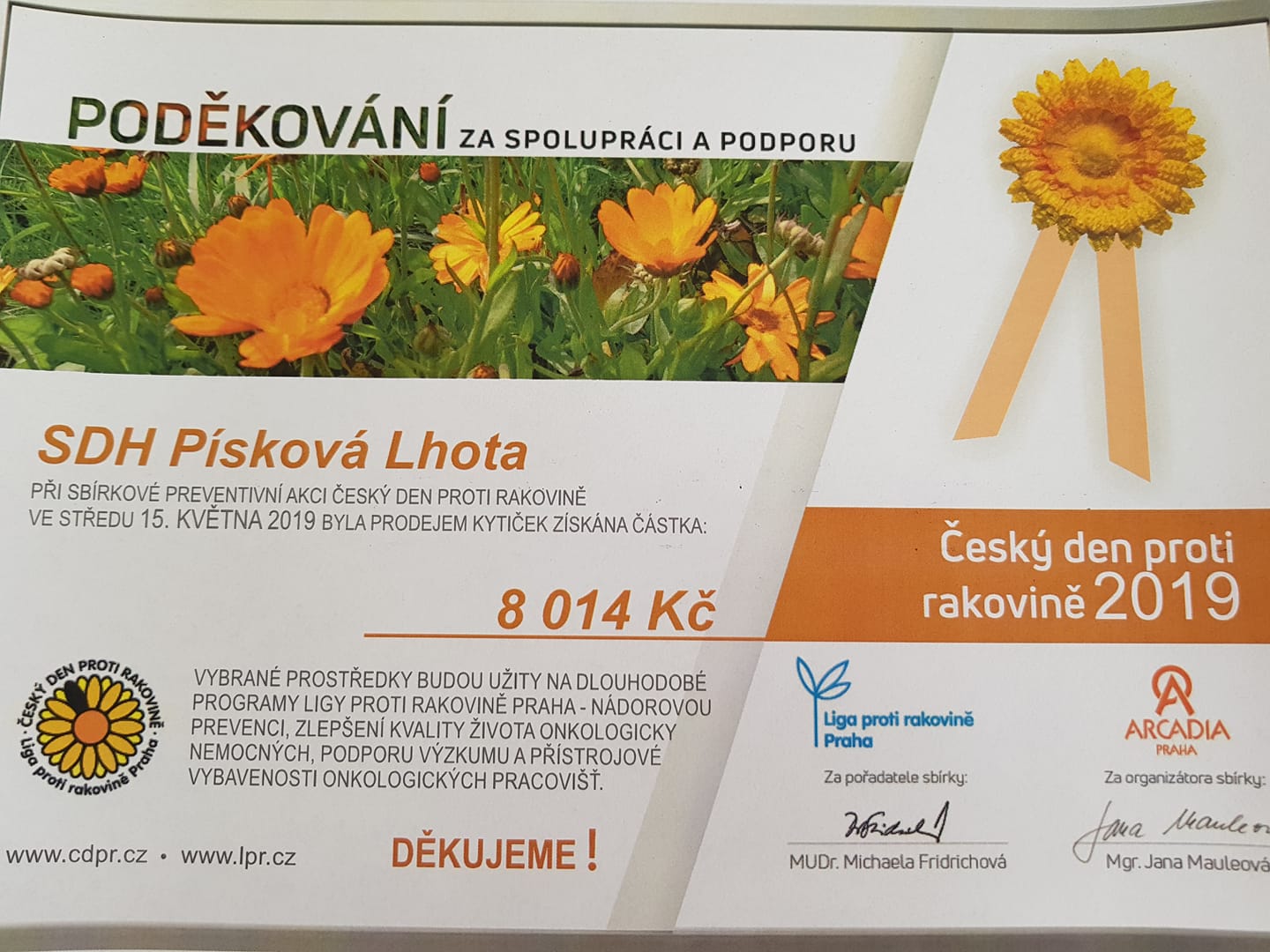 Dovolte nám touto cestou poděkovat všem skvělým lidem, kteří nás v květnu letošního roku podpořili při akci Český den proti rakovině 2019.